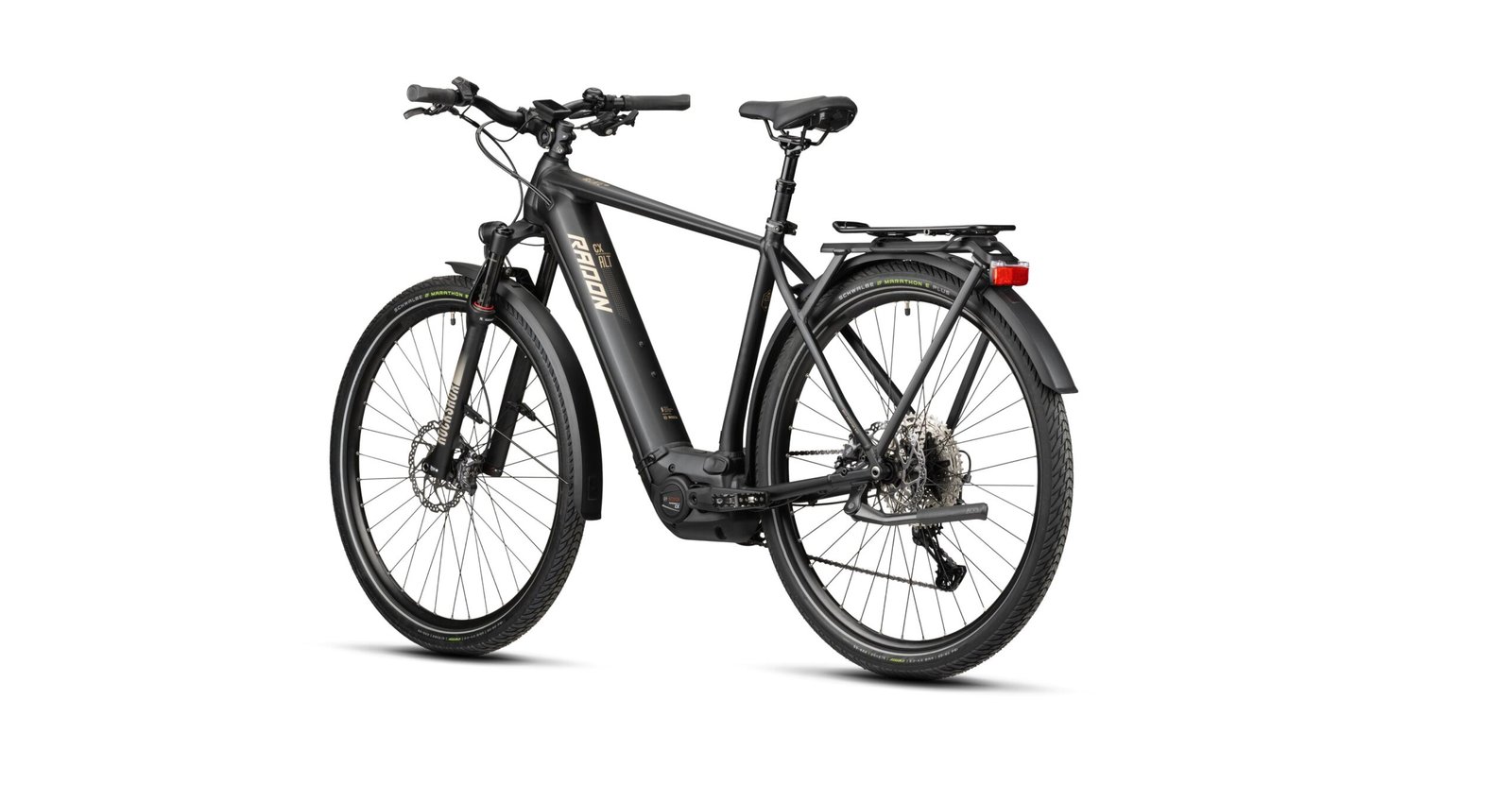 | Pneus: | Schwalbe Marathon E-Plus, wired, Reflex, 28″ x 55mm |