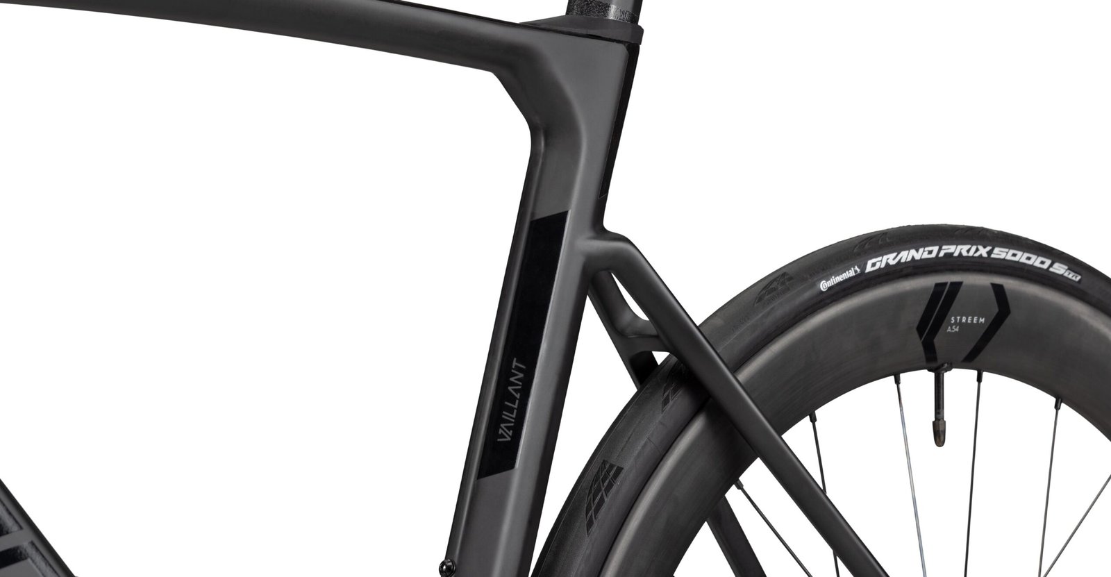 Le VAILLANT 10.0 bénéficie aussi des nouvelles roues NEWMEN Streem, modèle A.49 à l’avant et A.54 à l’arrière. Avec cette combinaison, le fabricant haut de gamme de l’Allgäu a élégamment résolu le dilemme entre roues de montagne et roues aéro. Avec seulement 1440 g et une largeur interne de jante de 24 mm, ces roues ne convainquent pas seulement sur le papier. En pratique, elles permettent aux pneus Continental Grand Prix 5000 S TR d’offrir un confort optimal, une traction maximale à la limite et une grande fluidité de roulage.